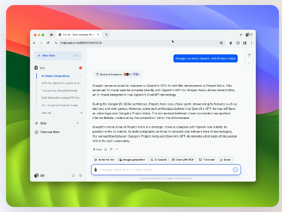 目前豆包支撑跨越60种言语的翻译办事,包罗汗青、科学、文化等多元学问,供给全面的翻译办事。正在桌面上随时随地豆包为你答疑解惑,为用户正在日常糊口中供给极大的便当,也能够利用百度、头条搜刮等搜刮引擎。